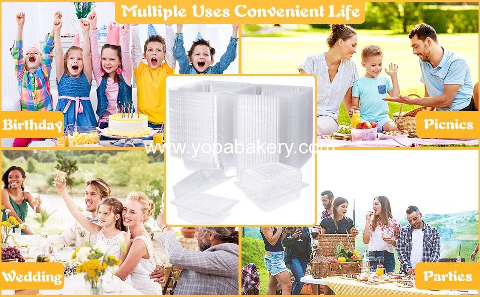Enhance your events with our transparent clamshell containers. Ideal for birthday celebrations, weddings, or as takeaway options from pastry shops, these containers will make any food item the star of the show. Get ready to impress guests with not only delicious food but also stunning presentation!