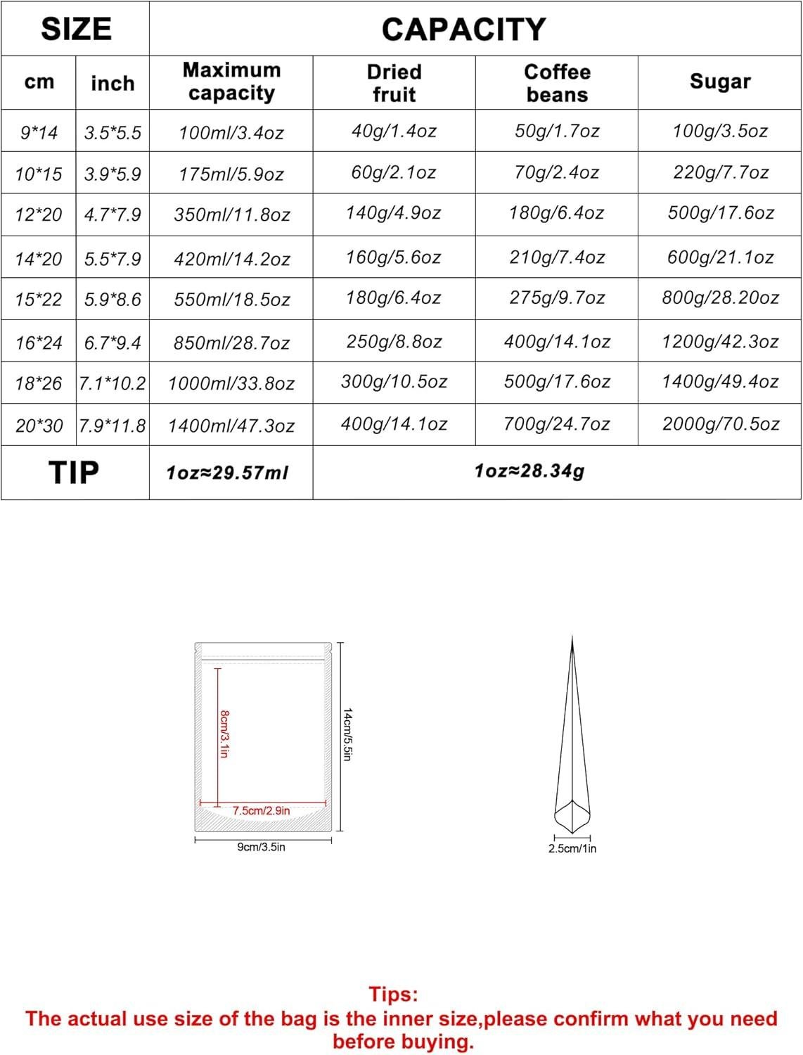 These resealable food pouches are ideal for an array of uses, including packing spices, bath salts, nuts, oats, cookies, candy, cereal, granola, coffee beans, wax melts, pet treats, and much more. They provide an excellent solution for maintaining product quality while enhancing visibility.