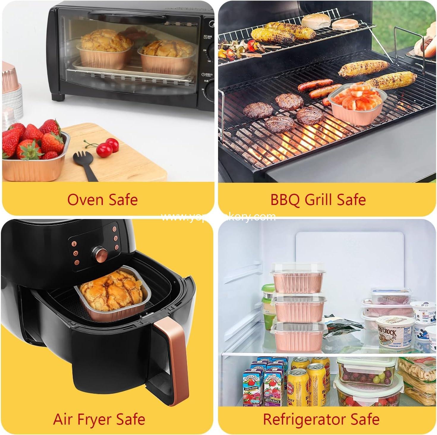 Made from thick, food-grade aluminum foil, these disposable mini pans can withstand temperatures up to 250℃/482℉. Remember to allow the cups to cool before applying the lids, as the clear lids are not heat resistant. The durable design ensures they stand firm in the oven or grill.