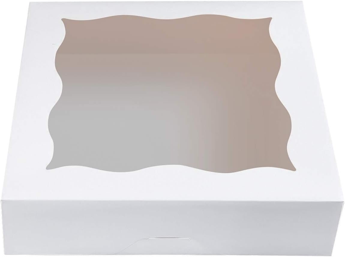 CHERRY 15-Pack 12"x12"x3"White Bakery Boxes with PVC Window for Pie and Cookies Boxes Large Natural Paper Box,Pack of 15
