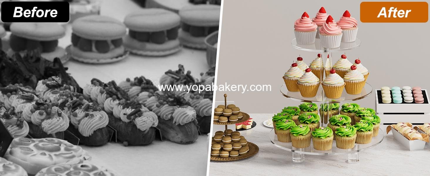 Setting up your cupcake stand is a breeze! Simply peel off the protective film, install the feet, and stack the layers. Our factory also offers wholesale and customization options to meet your needs, including personalized logos and styles. Sample requests are welcomed!