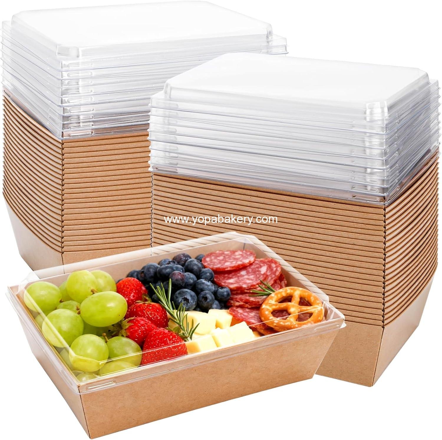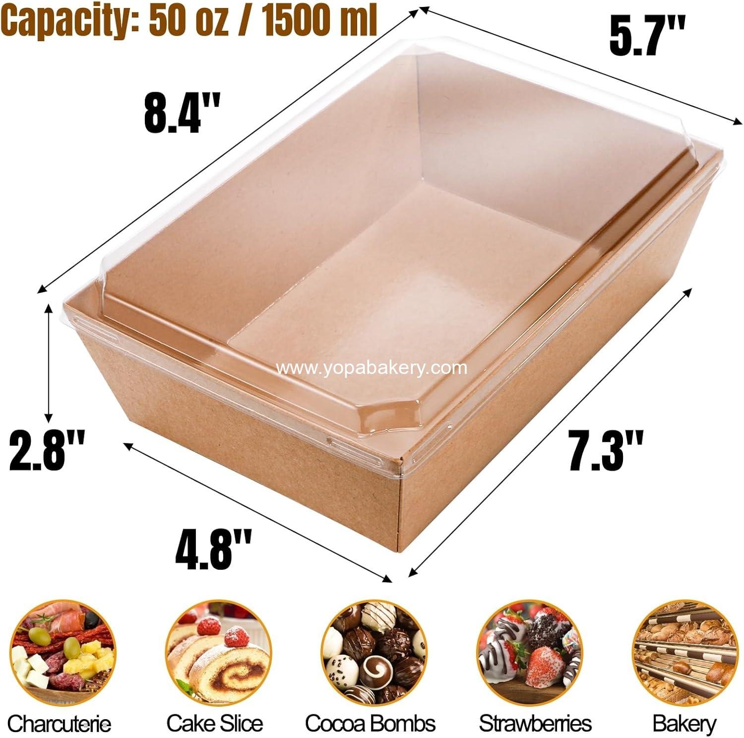 Wholesale 50 Pack Large Charcuterie Boxes 8.4″x5.7″x2.8″ Bakery Dessert Sandwich Paper Food Containers with Clear Lids for Cookies Donuts Muffins Salad Pastry Brown factory