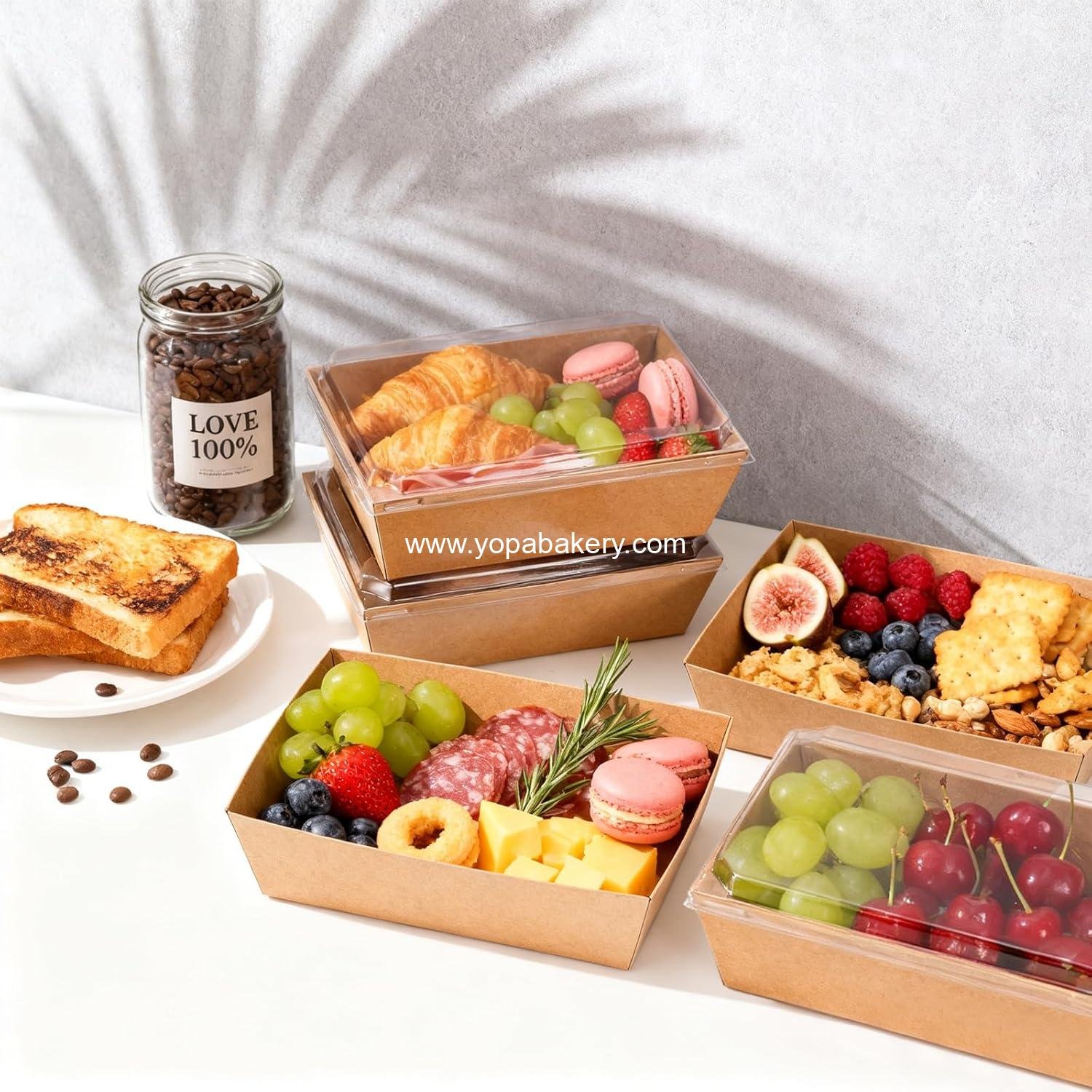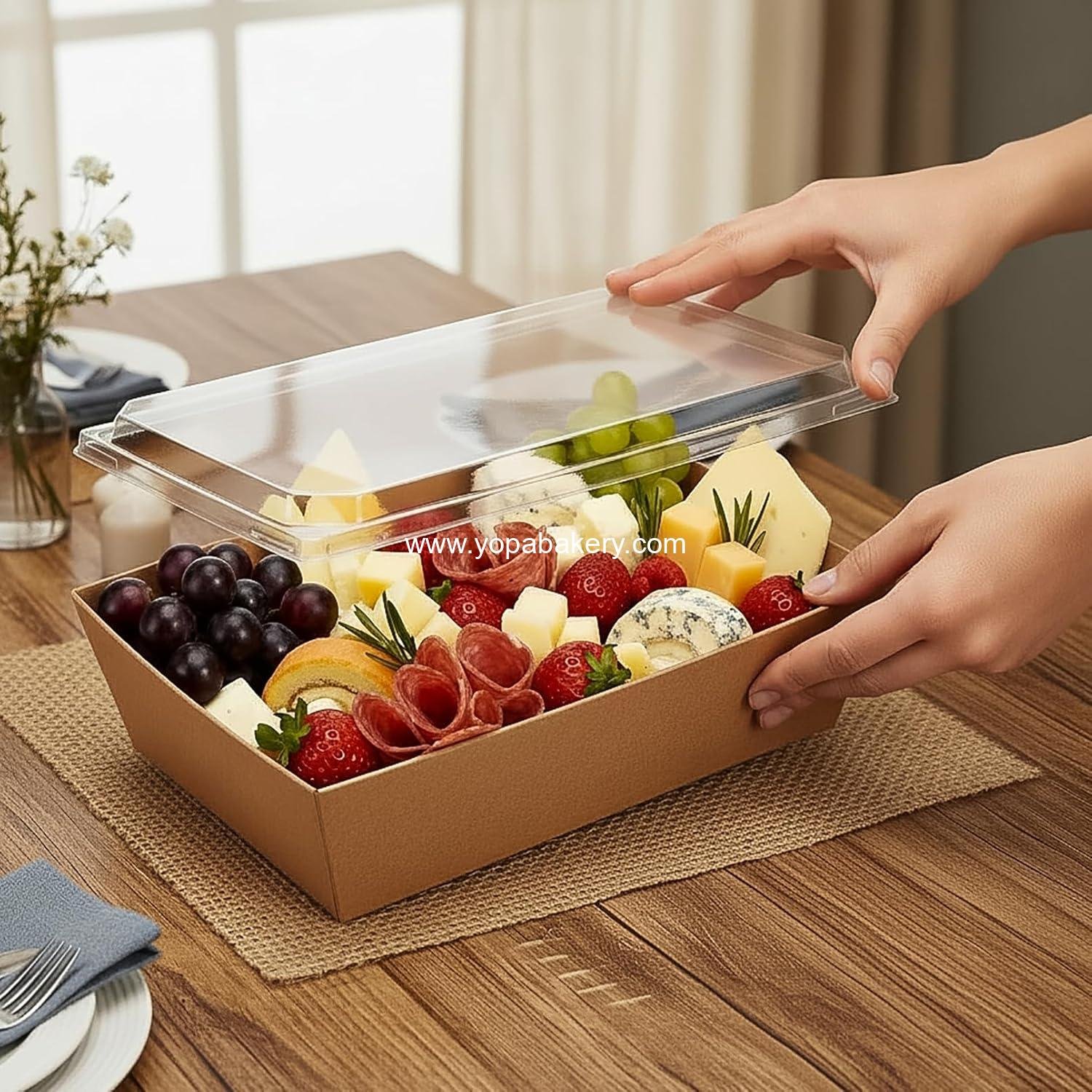 The innovative lid design features high-definition transparency thanks to its food-grade PET construction. This allows for a stunning, all-around view of your beautifully arranged food items, enticing your customers and guests alike. The clarity enhances the visual appeal of your treats, making them irresistible.