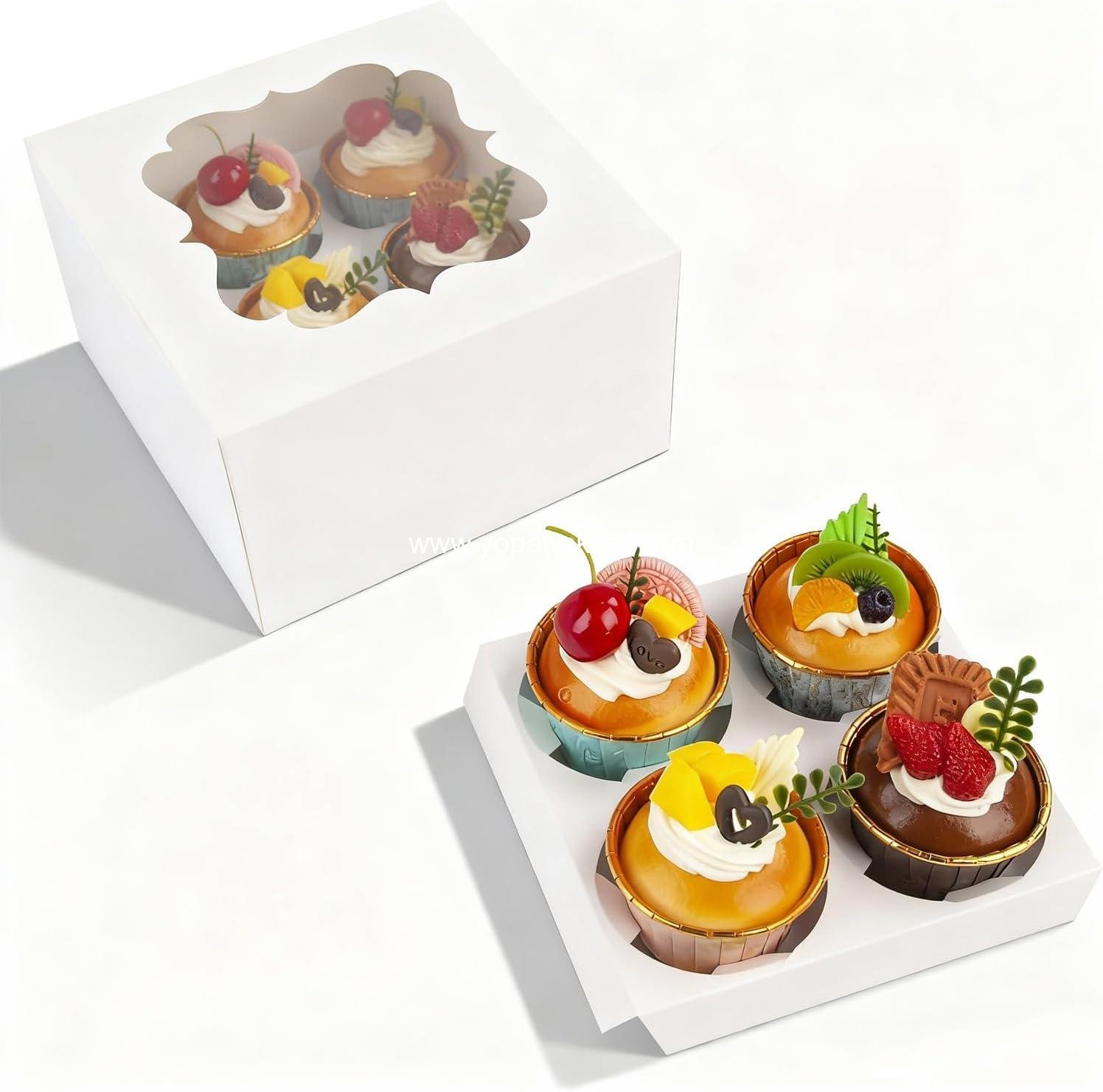 Cupcake Boxes with Window 6.5x6.5x3 Inch - 20 Pack Bakery Boxes with 4-Compartment Insert for Cupcakes, Cookies, Pastries, Macarons & Muffins (White)